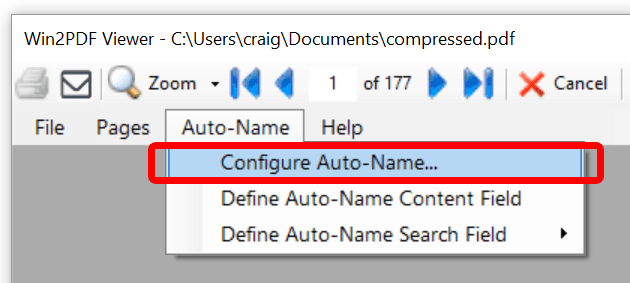 If you previously configured Auto-Name through the "Document" tab of PDF Options, the settings will be reflected in the Configure Win2PDF Auto-Name window.